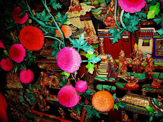 酥油花是一种用酥油(黄油)塑形像物的特殊技艺,为"塔尔寺三绝"(酥油花、壁画、堆绣)之一。